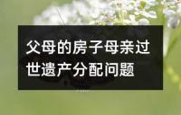 父母房屋在母亲过世后的遗产分配问题。依据《中华人民共和国继承法》,遗产按照配偶、子女、父母的顺序继承。共同财产分割时,应先分出一半归配偶所有。遗产分割应有利于生产和生活需要。遗产继承方式包括遗嘱继承、遗赠、遗赠抚养协议和法定继承。