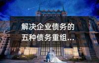 企业债务重组的五种方式。包括现金清偿债务、非现金资产清偿债务、债务转为资本、修改其他债务条件和混合重组。其中,现金清偿是指债务人用低于债务账面价值的现金偿还债务;非现金资产清偿则指用非现金资产如存货等偿还;债务转为资本则是将债务转化为股权;修改其他债