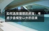 选择理想房屋时除了沙盘模型外需要考虑的因素。包括沙盘模型的准确性、周边环境、沙盘模型的规划细节、楼栋朝向和楼间距、绿化情况、小区内的交通情况、公共设施的具体位置以及不明确的建筑物等。购房者在选择房屋时应综合考虑这些因素,以确保居住质量和未来生活的便利
